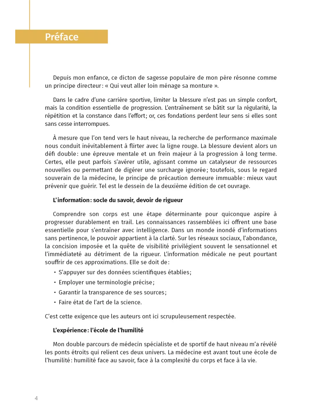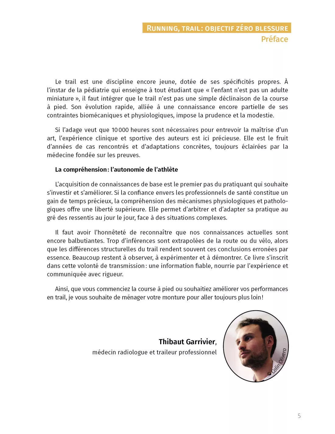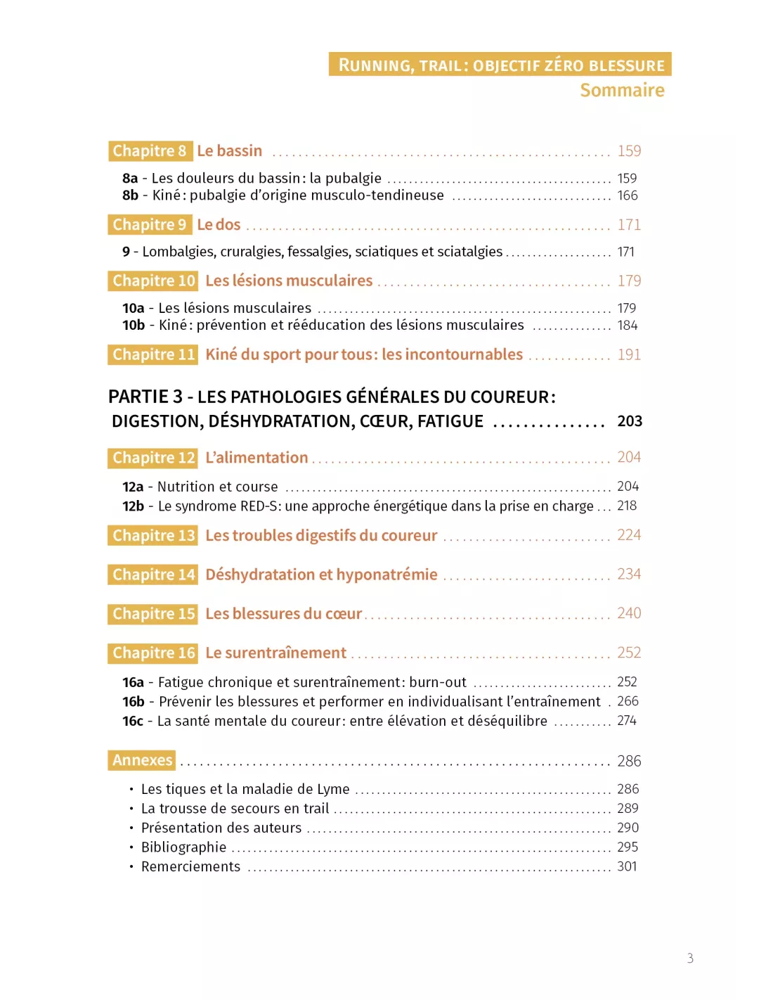 La nouvelle édition du guide de référence de prévention des blessures du coureur. Objectif zéro blessure s'adresse à l'immense majorité des coureurs, à toutes celles et à tous ceux qui souhaitent pratiquer régulièrement tout en limitant l’impact négatif sur leur corps, depuis le coureur loisir jusqu’au compétiteur très longue distance. Les petites gênes, les douleurs chroniques ou encore les blessures récurrentes ne sont pas une fatalité. Cet ouvrage va vous apprendre à les repérer, les décrypter et à mettre en place des outils de prévention. Écrit par une équipe pluridisciplinaire de soignants qui travaillent au quotidien avec les meilleurs athlètes français, il dresse un inventaire de l’ensemble des pathologies du coureur et de leur prise en charge. Avec Objectif zéro blessure, préservez-vous des blessures à court, moyen et long terme !